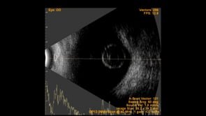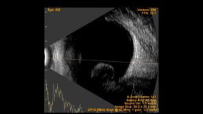Dynamic B-scan showing post-traumatic dislocated lens in the vitreous, freely moving in the cavity with eye movements.