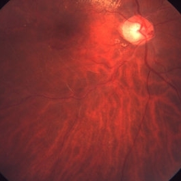 Fundus photograph showing attenuated vessels in the inferotemporal area.