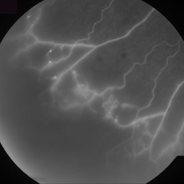 Fluorescein angiogram inferior to the macular area, showing wide areas of capillary nonperfusion.