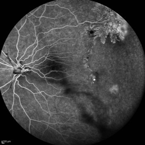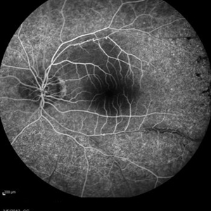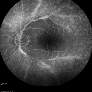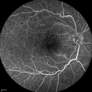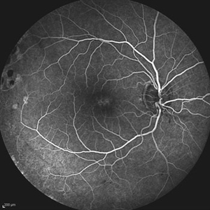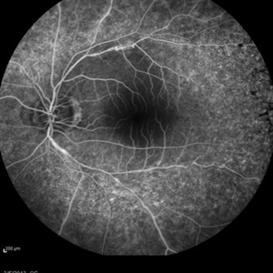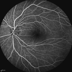 FA image of the Left eye of a 24-year-old woman with FEVR and visual acuity of 20/30.