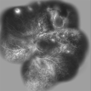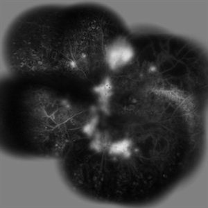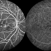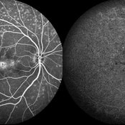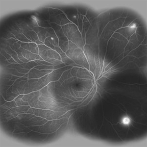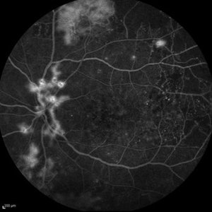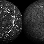 Wide field FA image of the right eye of a 25-year-old woman with retinal angiomatosis (Von Hippel-Lindau). Fundus of the right eye seemed to be normal in ophthalmoscopy.