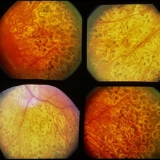 59-year-old black female. RE 20/50 and LE 20/64. Proliferative diabetic retinopathy.