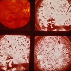 64-year-old white female. Proliferative diabetic retinopathy.