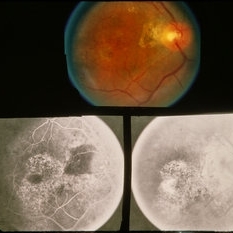 57-year-old white female. RE 20/25 LE 20/250. CSR (SRNV).