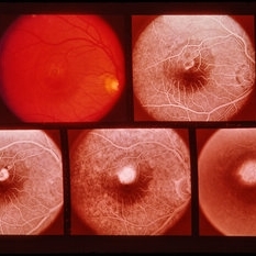 61-year-old white male. Central serous retinopathy. CF4' and 20/200+.