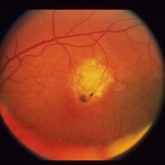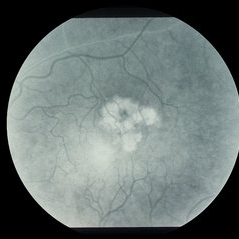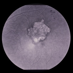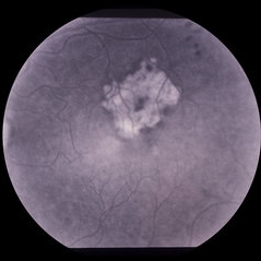 Fundus Fluorescein angiogram, ARMD. ARMD Laser Rx