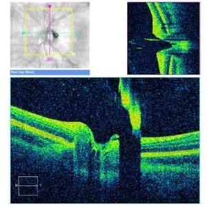 30-year-old female with fhx VHL and CNS hemangioblastomas and visceral lesions. P/C with a floater (no PVD or VH) after episodes of vomiting. - corresponds to earlier photos