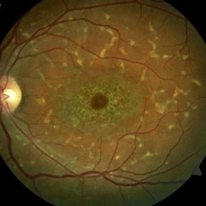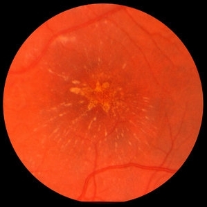 Fundus autofluorescence photograph of 75-year-old white male with 6 day history of acute vision loss. 20/40