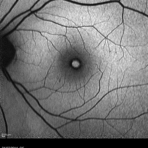 Autofluorescence image of a 55-year-old-woman with macular hole on her right eye.
