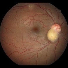 Fundus photography of an 15-year-old boy with tuberous sclerosis.