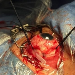 Trans-surgical photograph of a 40-year-old man with phakic eye, high myopia and macula off rhegmatogenous retinal detachment. Without complications after 5 years of follow up.