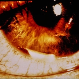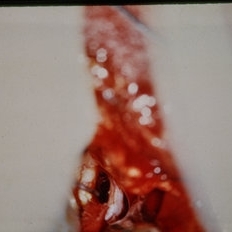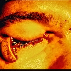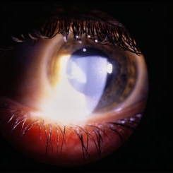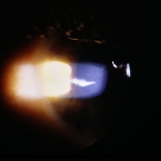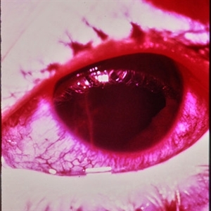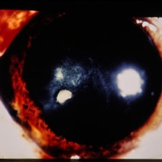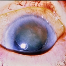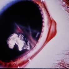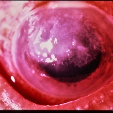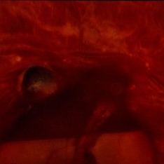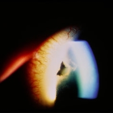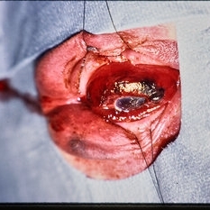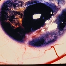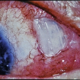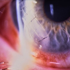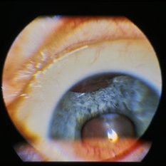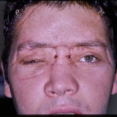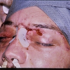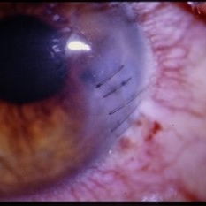 Trauma – surgical view – long scleral laceration repair; showing intact globe after repair.