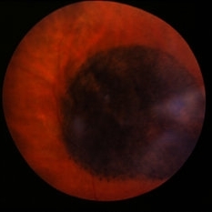 Underlying retinal choroidal melanoma with dense vitreous seeding of choroidal melanoma cells.