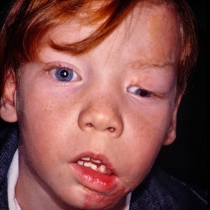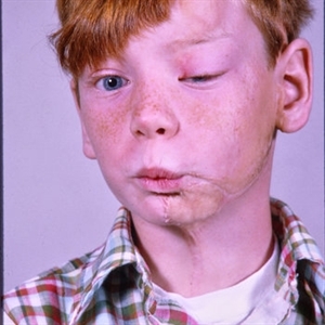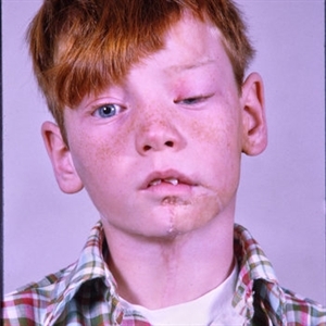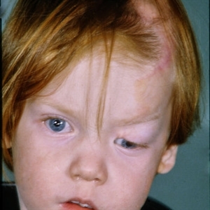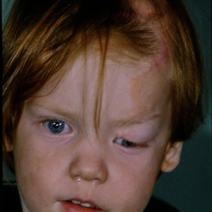 External photo of face in Linear Nevus Sebaceous syndrome.