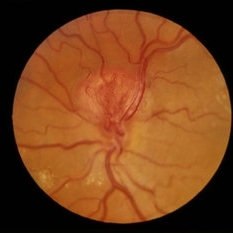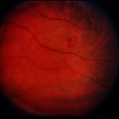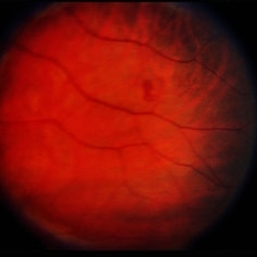 47-year-old with 20/20 OU. Fellow right eye of patient with retinal capillary hemangioblastoma associated the optic nerve in the left eye, in a patient with Von Hippel-Lindau Disease.