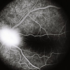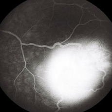 Fluorescein angiogram of a retinal capillary hemangioblastoma No history. Fluorescein leakage is abundant in this later frame.