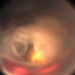 Fundus photograph of a 13-year-old male with a chronic retinal detachment following a penetrating ocular trauma. There is a retinal cyst and proliferative vitreoretinopathy.