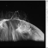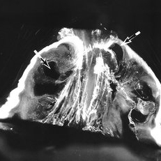 Dark-field slit microscopy was performed on fresh, unfixed, post-mortem human eyes that had undergone dissection to peel off the sclera, choroid, and retina. The vitreous body remains attached to the anterior segment which is seen below, while the posterior pole is above in these images. These horizontal optical sections demonstrate intense light scattering by the posterior vitreous cortex and the remnant of the hyaloid artery destined to be Cloquet’s Canal (left image), but no other light scattering within the vitreous body in either the 33 GW human fetus (left image) or this 6 year-old child (right image). [from Sebag J: The Vitreous - Structure, Function, and Pathobiology. Springer-Verlag, New York, 1989, left image pg. 77; right image pg. 79; images © Springer Nature, reprinted with permission]