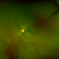 Syphilitic Chorioretinitis Syphilitic ChorioretinitisOct 2 2020 by David L Kilpatrick, MD 22-year-old female presented with painless blurry vision OD > OS for one week. On exam, she exhibited moderate vitritis, papillitis and broad placoid chorioretinitis OD and multifocal placoid peripheral chorioretinitis OS (without vitritis or papillitis). The anterior segment was unremarkable OU. Serum RPR and confirmatory treponemal Ab were both positive. Neuroimaging and CSF studies were unremarkable. A 2 week course of IV penicillin was initiated. The placoid lesions had resolved five days after beginning treatment. Photographer: Mississippi Retina Associates Condition/keywords: acute syphilitic posterior placoid chorioretinitis, syphilis