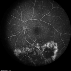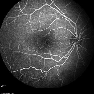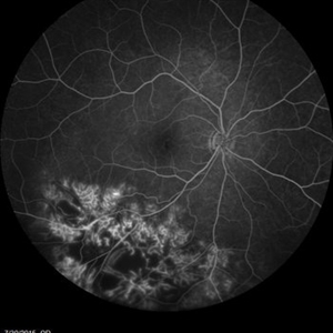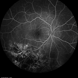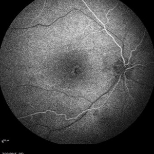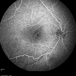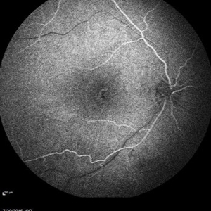 Retinal Dystrophy of 24-Year-Old Male/ Fluorescein Angiogram OS