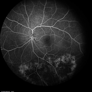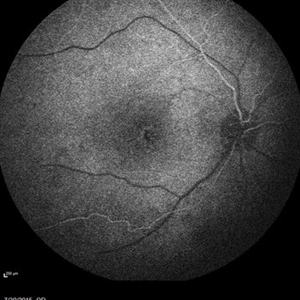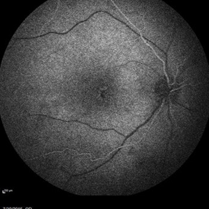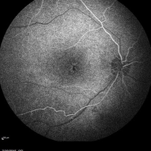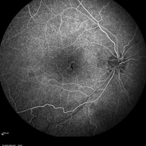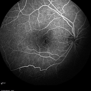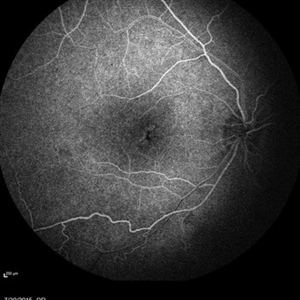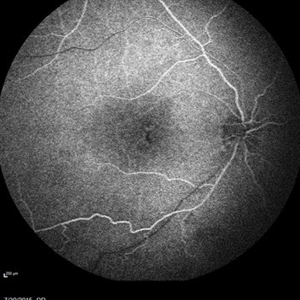 Retinal Dystrophy of 24-Year-Old Male/ Fluorescein Angiogram OD