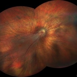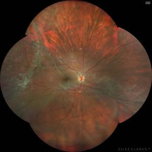 Ultrawide field fundus photograph of a 62-year-old male with hypotony following blunt ocular trauma