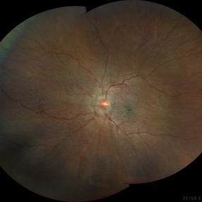 21-year-old with macular dragging due to untreated cicatricial ROP. Note large peripheral avascular retina (PAR) at the nasal periphery.