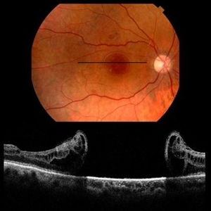 Imaging device: Optical Coherence Tomography system OCT CIRRUS 5000, Line Protocol, HD 21 line. Cirrus 5000 does not do a wide-angle tomographic image. This assembly was done manually with the junction of 11 lanes of 9mm each.
