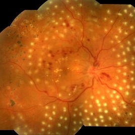 Patient female, 55-years-old, the bearer of hypertension, blood systemic and diabetes. Visual acuity 20/60 c/c. ja with the treatment of laser photocoagulation.