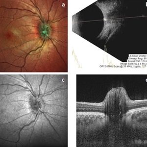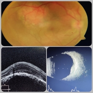 Condition/keywords: B scan ultrasound, choroidal hemangioma, fundus photograph, optical coherence tomography (OCT), photodynamic therapy