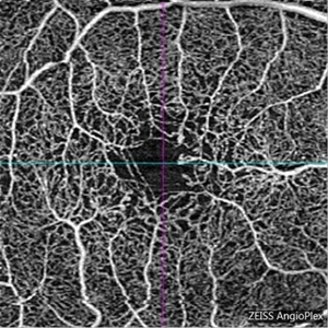 OCT Angiography image in a 51-year-old male with fogging of vision and leaking on fluorescein angiography.