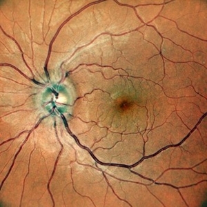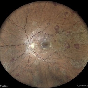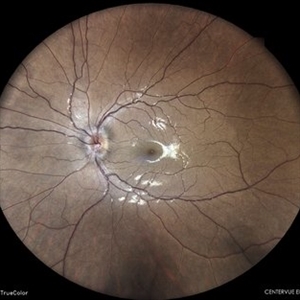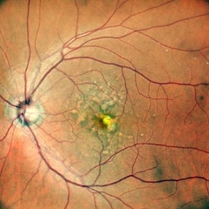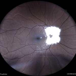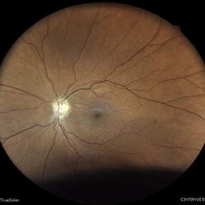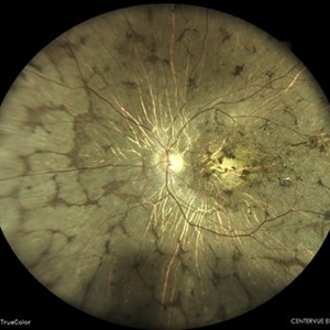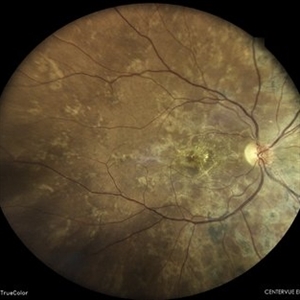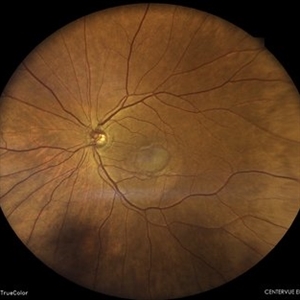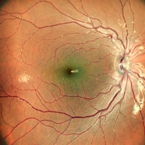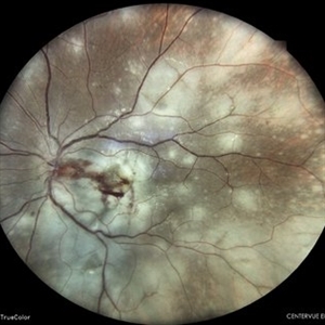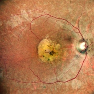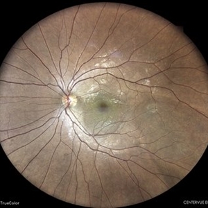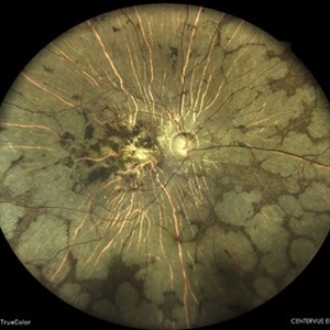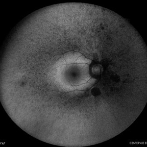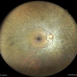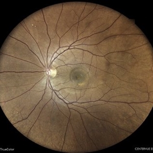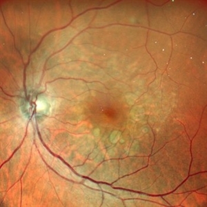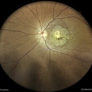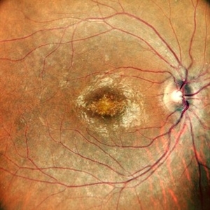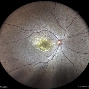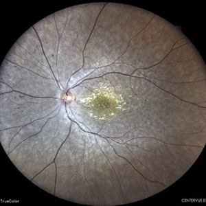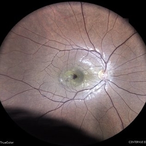 COLOUR FUNDUS PHOTOGRAPH OF 20 YEAR OLD MALE WITH MACULAR DYSTROPHY