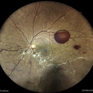 COLOUR FUNDUS PHOTOGRAPH OF A 59 YEAR OLD FEMALE WITH BRACH RETINAL VEIN OCCLUSION