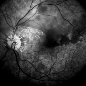 Branch Retinal Artery Occlusion With Calcium Embolus at the Disc - Fundus Fluorescence Angiogram (FA)
