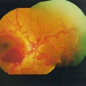 Condition/keywords: color photo, dilated tortuous vessels, subretinal hemorrhage