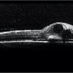 OCT image of a 55-year-old man with BRVO and center involving cystoid macular edema, showing a perfect circular cystoid space.