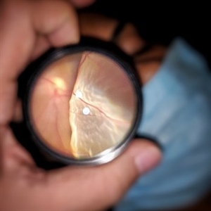 Fundus photograph of a 35-year-old female with a bullous rhegmatogenous retinal detachment.
