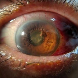 Runner meets park bench. The worst open globe I have ever seen on a CT scan. Multiple attempts at repair were made but the final visual acuity was light perception.
