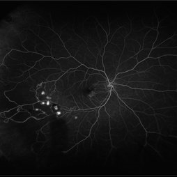 Condition/keywords: cystoid macular degeneration, cystoid macular edema (CME), FA late phase, fluorescein angiogram (FA)