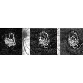82-year-old male, s/p 14 x ranibizumab injections, with persistent exudation and neovascularization on IVFA/ICG/OCTA. The three images reveal the progression of OCTA imaged neovascularization during the course of the anti-VEGF monotherapy.