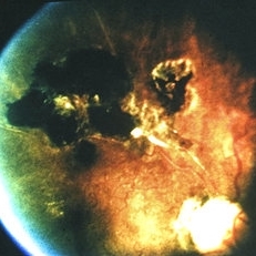 Condition/keywords: hemorrhage, retinal necrosis, scleral buckle