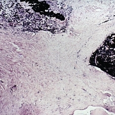 Pingueculum showing masses of fragmented fibers resembling actinic elastosis.