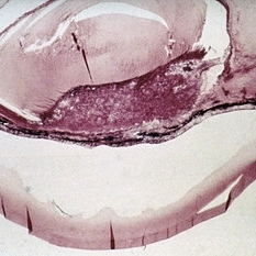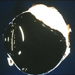 Condition/keywords: atrophia bulbi, intraocular disorganization, ossification, scar