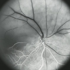 Condition/keywords: capillary closure, capillary nonperfusion, central retinal artery occlusion (CRAO), FA mid phase, fluorescein angiogram (FA)