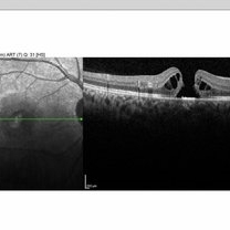 OCT of an 14 years old man with Full Thickness Macular Hole after direct exposure of the blue laser to his eye
