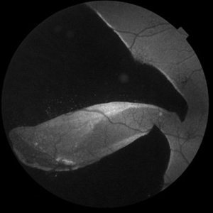 Autofluorescence of a 50 year-old patient with spontaneous giant RPE rip.