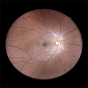 Fundus photograph of the right eye of an 32-year-old woman with CSCR.