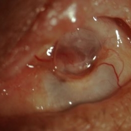 This patient presented with a discharge some 15 years have previous retinal detachment surgery. The buckle and suture was removed.