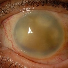 This patient presented following a tap and inject for endophthalmitis. Unfortunately the cornea decompensated as fibrin became organized in the anterior segment.