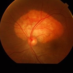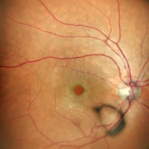 Condition/keywords: choroidal osteoma, fundus photograph
